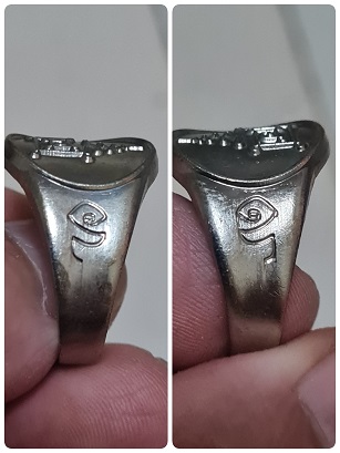 แหวนยันต์(นะสาริกาตัวเมีย) หลวงพ่อกวย วัดโฆสิตาราม(วัดบ้านแค) เนื้ออัลปาก้า ปี2562 |
