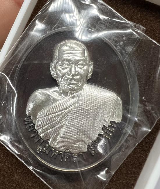 เหรียญกลมย้อนยุค อายุวัฒนมงคล81 หลวงปู่มหาศิลา สิริจันโท เนื้อนวะหน้ากากเงิน เลข1436 |