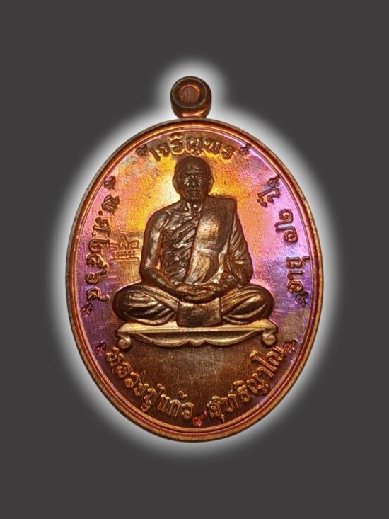 A1418.เหรียญเจริญพร หลวงปู่แก้ว วัดเขาไม้เเก้ว ทองเเดงผิวไฟรมรุ้งสวยมาก เลข 2968 |