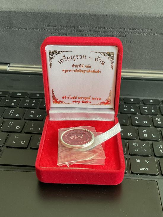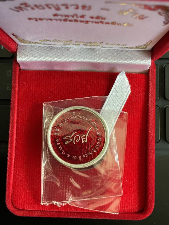 เหรียญรวย-ล้าน หลวงปู่มหาศิลา เนื้อเงินลงยาแดง หมายเลข 424 เลขหามครับ
