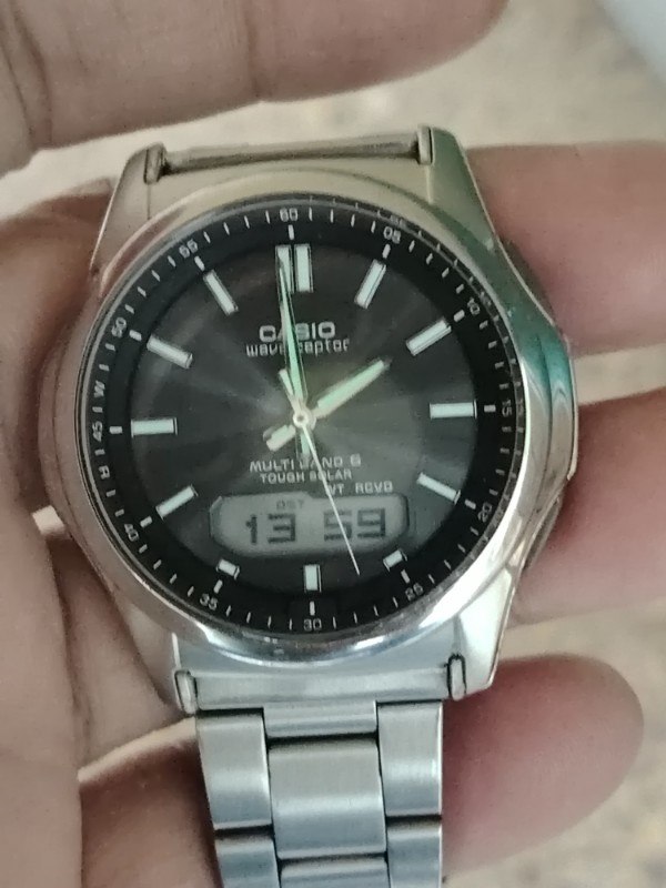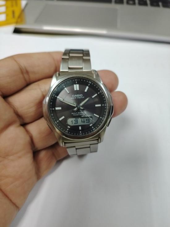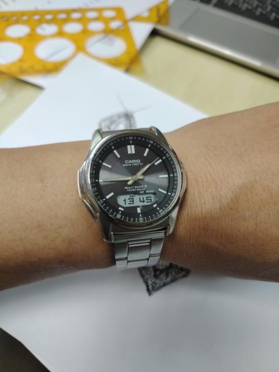 .​หน้าจอ: ผสมผสานระหว่างเข็มนาฬิกาแบบอะนาล็อกและหน้าจอแสดงผลแบบดิจิทัล (LCD) ซึ่งสามารถสลับการแสดงผลได้หลายรูปแบบ (เช่น วันที่/วันในสัปดาห์, วินาที, หรือเวลา) ขนาดตัวเรือน (แนวตั้ง x แนวนอน x หนา) โดยประมาณ 45.1 \times 42.1 \times 11 มม.