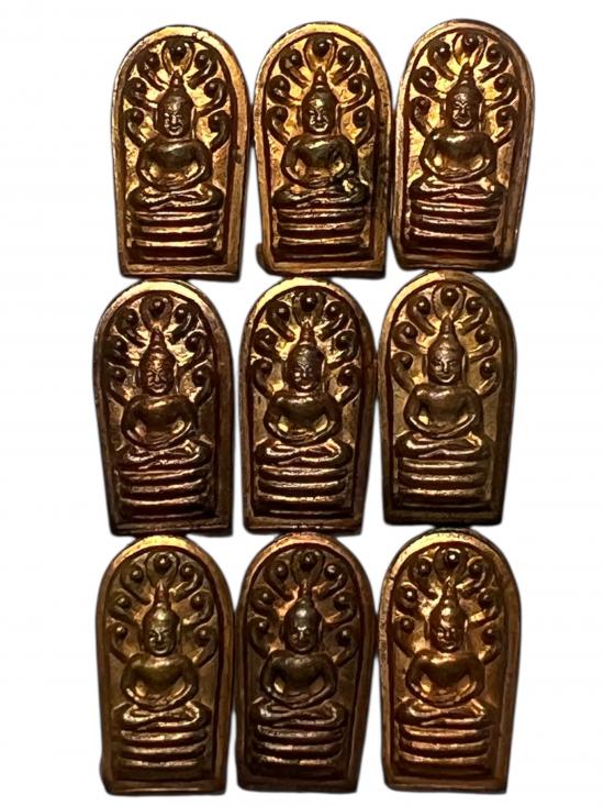 9องค์!! ปรกใบมะขาม หลวงพ่อยิด วัดหนองจอก รุ่นสรงน้ำ ปี 2537 เนื้อทองแดงผิวไฟ ตอกโค้ด (หลวงพ่อยิดปลุกเสก) |