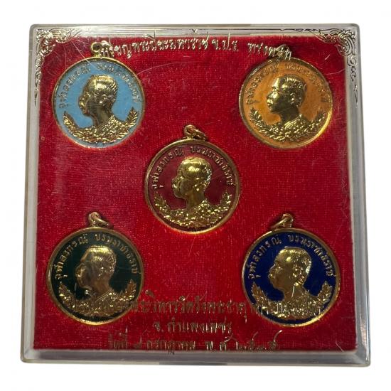 เหรียญพระปิยะมหาราช จปร. ทรงครุฑ ที่ระลึกสร้างพระวิหารวัดวังพระธาตุ กำแพงเพชร ปี 35 กะไหล่ทองลงยา ครบ5สี กรรมการ สวยๆกล่องเดิม |