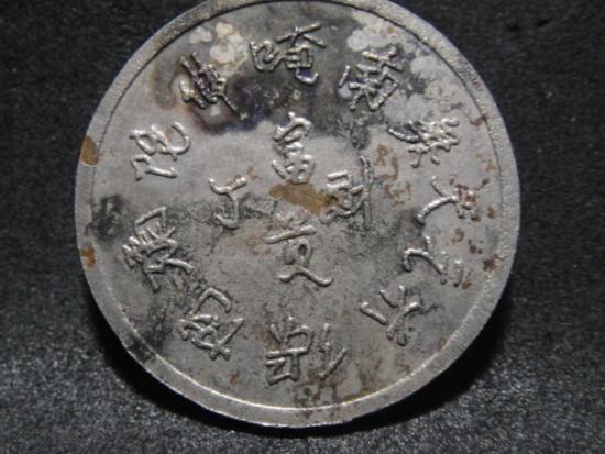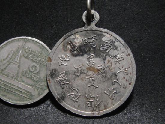 วัดใจเคาะเดียว.......100....... เหรียญพระศรีอริยเมตไตร พระสังกัจจายน์ หลังยันต์ภาษาจีน เก่า ไม่ทราบที่ |