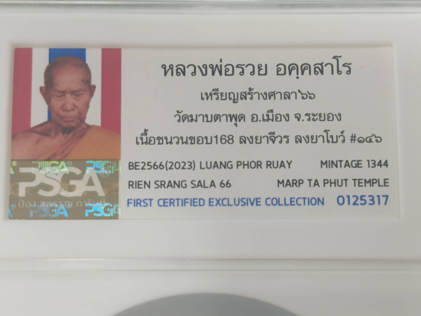 เหรียญสร้างศาลา๖๖ หลวงพ่อรวย วัดมาบตาพุด ระยอง เนื้อชนวนขอบ168 ลงยาจีวร ลงยาโบว์ No.146 (สร้าง1,344 เหรียญ) ปี2566 งานPSGA สมบัติแห่งสยาม