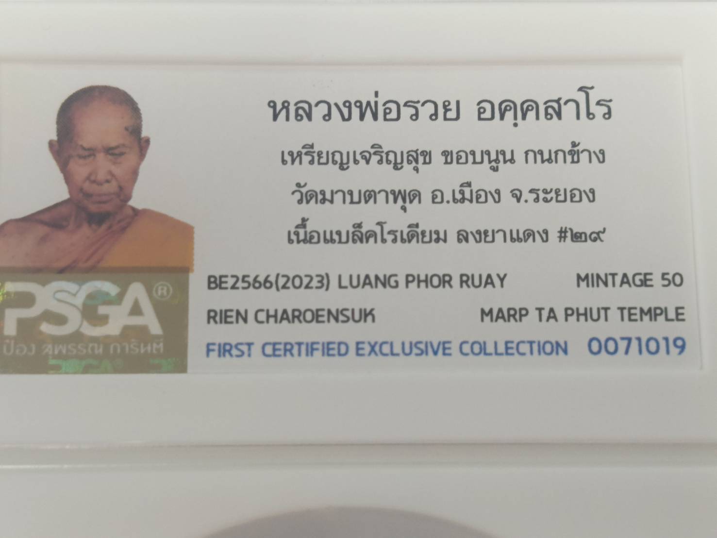 เหรียญเจริญสุข ขอบนูน กนกข้าง หลวงพ่อรวย วัดมาบตาพุด ระยอง เนื้อแบล๊คโลเดียม ลงยาแดง No.29 (สร้าง 50 เหรียญ) ปี2566 งานPSGA สมบัติแห่งสยาม