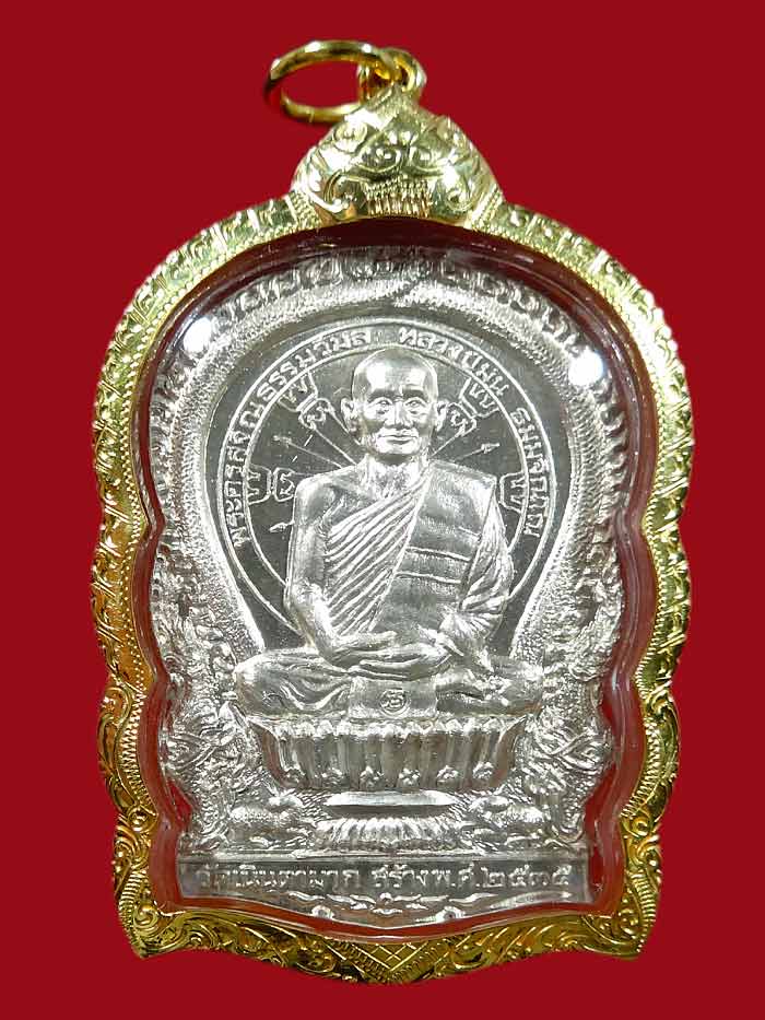 เหรียญนั่งพานรุ่นแรก หลวงพ่อม่น วัดเนินตามาก ปี 2535 เนื้อเงิน หมายเลข 1926