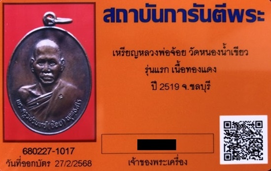 เหรียญรุ่นแรก หลวงพ่อจ้อย วัดหนองน้ำเขียว ตอกโค้ด เนื้อทองแดง ปี 2519 จ.ชลบุรี สภาพสวย มาพร้อมบัตรรับรองครับ