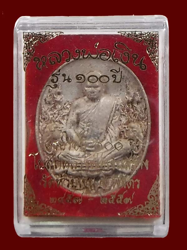 แดงที่เคาะแรก !!! เหรียญหล่อพุทธศิลป์ รุ่น 100 ปี เนื้ออัลปาก้า หลวงพ่อเงิน ออกวัดห้วยเขน (ตอกโค๊ต+หมายเลข 357) + บัตรพระแท้
