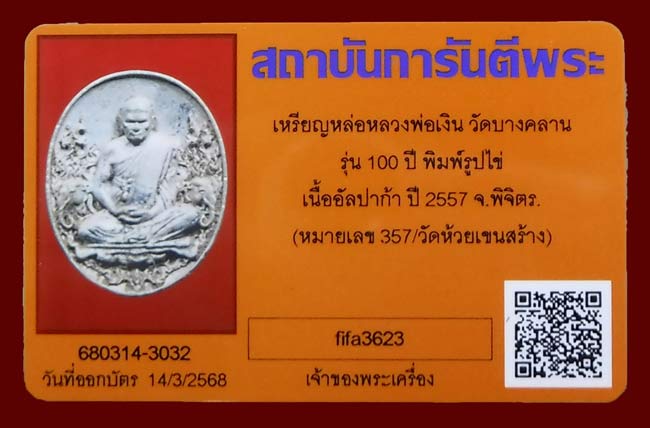 แดงที่เคาะแรก !!! เหรียญหล่อพุทธศิลป์ รุ่น 100 ปี เนื้ออัลปาก้า หลวงพ่อเงิน ออกวัดห้วยเขน (ตอกโค๊ต+หมายเลข 357) + บัตรพระแท้ |