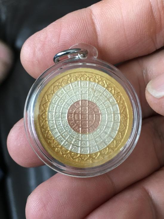 ด้านหลังเป็นยันต์มหาพิชัยมงกุฏพระพุทธเจ้า ในการจัดสร้างได้รับความอนุเคราะห์จาก พราหมณ์ยศ โกมลเวทิน ซึ่งประกอบด้วย แผ่นยันต์พระคณาจารย์ต่างๆ ผงตะไบชนวนพระกริ่งรุ่นต่างๆ ผงธูปและเกสรดอกไม้จากสถานโบถส์พราหมณ์ เทวาลัยท่านท้าวมหาพรหมราชประสงค์ เทวาลัยพระพิฆเนศวร กรมศิลปากร เทพมณเฑียร วัดพระศรีอุมาเทวี สีลม เทวาลัยพระพิฆเนศวร พระราชวังสนามจันทร์ เทวาลัยพระตรีมูรติ พิฆเนศวร ศูนย์การค้าอิเซตัน และเทวสถานโบถส์พราหมณ์ นครศรีธรรมราช |