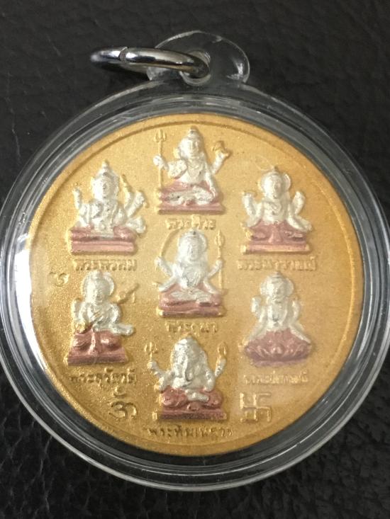 เหรียญ 7มหาเทพ เนื้อสามกษัตริย์ พิธีมหาเทวาพุทธาภิเษก โดยพระเกจิคณาจารย์ 16 รูป ร่วมอธิษฐานจิตปลุกเสก ณ เทวสถานโบถส์พราหมณ์ เสาชิงช้า กรุงเทพฯ เสริมสิริมงคลในด้านการค้า ประกอบธุรกิจ โชคลาภเงินทอง ทรัพย์สิน และคุ้มครองป้องกันภยันตราย โดยอัญเชิญ "มหาเทพ" ทั้ง 7 องค์ คือ