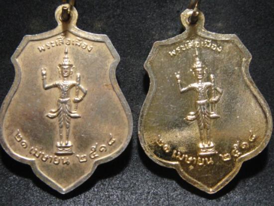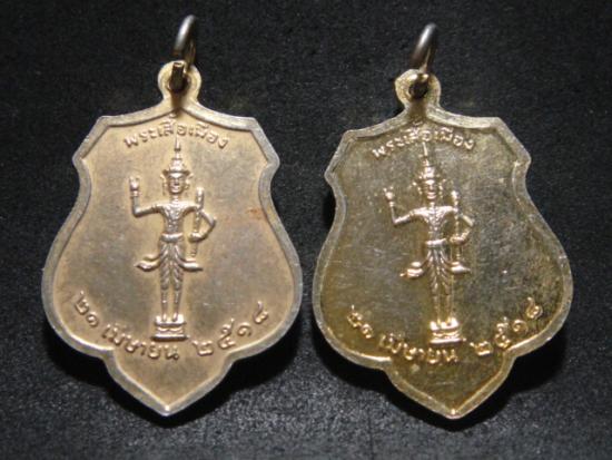 วัดใจเคาะเดียว.....100......เหรียศาลหลักเมืองกรุงเทพฯ ปี 2518 อ.ฝั้น , ลพ.เกษม , ลป.โต๊ะ , ลพ.เต๋ , ลพ.เนือง , ลพ.เส่งฯลฯ ร่วมปลุกเสก เนื้อทองแดงกะไหล่ทอง สวย รวม 2 เหรีย