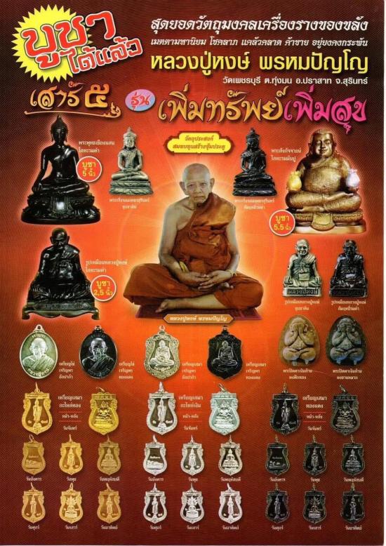 วัตถุมงคล เสาร์ ๕ รุ่น " เพิ่มทรัพย์ เพิ่มสุข " นี้ ได้จัดสร้างขึ้นเนื่อง ในวาระปีนี้หลวงปู่หงษ์ พรหมปัญโญ มีอายุครบ 92 ปีในวันที่ 28 กุมภาพันธ์ 2553 วัตถุมงคลเสาร์ห้า รุ่น เพิ่มทรัพย์ เพิ่มสุข ได้ฤกษ์พิธีมหาพุทธาอธิษฐานจิตปลุกเสก ประจุพระคาถาและประจุธาตุทั้ง 4 คือ ดิน น้ำ ลม ไฟ เข้าสู่วัตถุมงคล ในวันเสาร์ที่ 20 มีนาคม 2553 ซึ่งตรงกับวันขึ้น 5 ค่ำ เดือน 5 เพื่อความสมบูรณ์ตามประเพณีและความศักดิ์สิทธิ์ เข้มขลัง ถูกต้อง เพื่อประสงค์ให้ผู้ที่จะเคารพและศัทธาในองค์หลวงปู่หงษ์ พรหมปัญโญ ที่จัดสร้างขึ้นในครั้งนี้มีไว้บูชาที่บ้านหรือติดตัว จะอยู่เป็นสุขคุ้มภัย กันภัย และมรความเจริญรุ่งเรืองในหน้าที่การงาน ค้าขายร่ำรวย โชคลาภ มหาเศรษฐี แคล้วคออกกลาด ปลอดภัย
