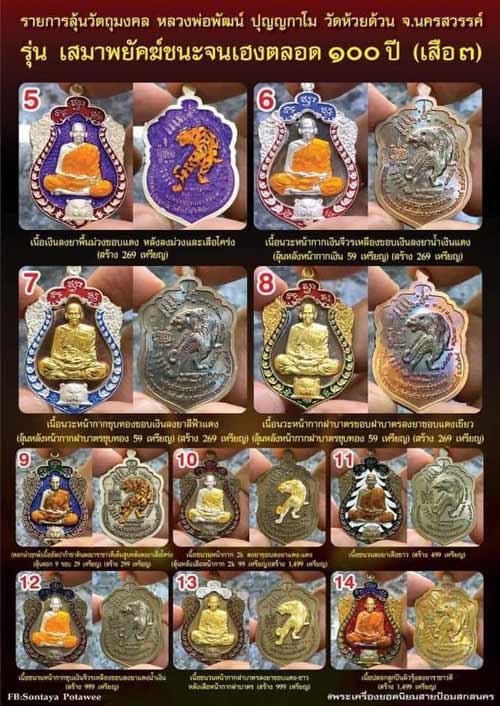 รุ่นหลักยอดนิยม เหรียญรุ่น (เสือ3) พยัคฆ์ชนะจนเฮงตลอด หลวงพ่อพัฒน์ วัดห้วยด้วน จ.นครสวรรค์ ปี2564 เนื้อชนวนหน้ากาก2Kลงยาขอบแดง จำนวนสร้างน้อย มีเพียง 1499 องค์เท่านั้น พระยคต้น น่าบูชาสุดๆ สวยมาก อนาคตต่อไปจะเป็นพระหลักของหลวงพ่อพัฒน์แน่นอนครับ ราคายังเบาๆอยู่ครับ เก็บได้รีบเก็บครับ พระหลวงพ่อพัฒน์มีประสบการณ์มากกับผู้ที่แขวนบูชา อนาคตจะเป็นพระหลักของเมืองนครสวรรค์แน่นอนครับ โอกาสเป้นของผู้ที่มองเห็นเสมอ รับประกันชั้นหนึ่งครับ |