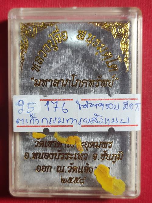 รุ่นแรกไก่หลวงปู่จื่อ พันธมุตโต รุ่น มหาลาภโภคทรัพย์ ออกวัดเขาตาเงาะอุดมพร จ.ชัยภูมิ ปี 58 เนื้อ ตะกั่วพิมพ์กรรมการไม่ตัดปีกหลังแบบ หมายเลข 176 สภาพสวย เคาะเดียวแดง |