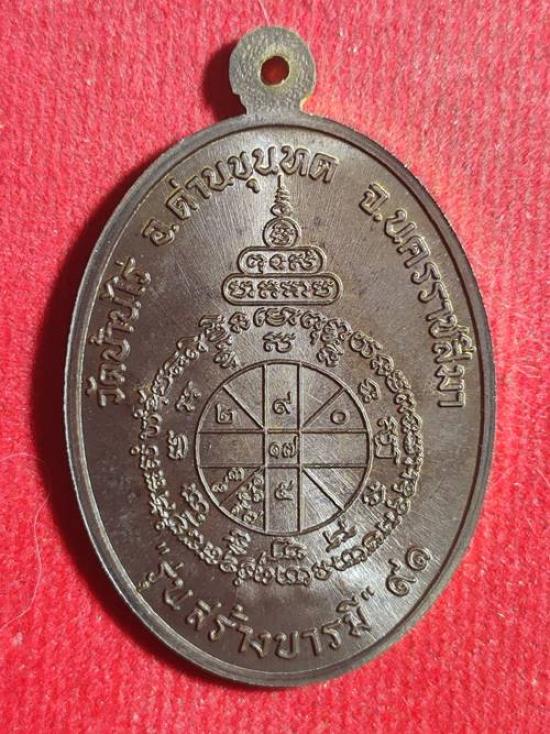 เหรียญหลวงพ่อคูณ ปริสุทโธ รุ่น สร้างบารมี 91 ตำนานผู้สร้างคนเดียวกันกับ ปี 19 รุ่นแรก ที่โด่งดังมาแล้ว ออกวัดบ้านไร่ ปี 57 เนื้อ ชนวน หมายเลข 1867 มีจาร สภาพสวย เคาะเดียวแดง