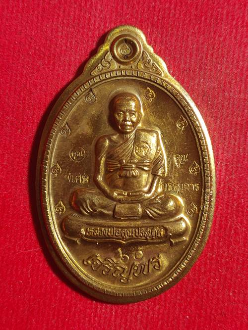 เหรียญหลวงพ่อคูณ ปริสุทโธ รุ่น เจริญพรล้าง 89 ออกวัดถนนหักใหญ่ ปี 2555 เนื้อ ทองฝาบาตรพิมพ์กรรมการไม่ตัดปีกหลังแบบ หมายเลข 60 เคาะเดียวแดง