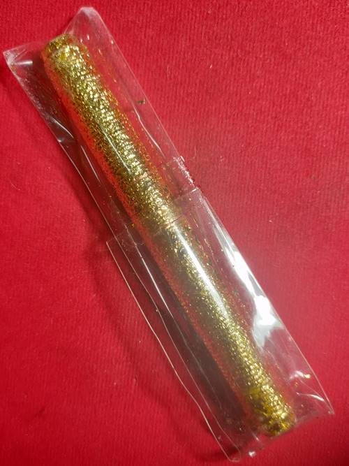 ตะกรุดมหาโสพัสมงคล หลวงพ่อคูณ ปริสุทโธ รุ่น บารมีย้อนยุค 57 ออกวัดบ้านไร่ ปี 57 เนื้อ โลหะปิดทอง ยาว 4 นิ้ว หมายเลข 55 เคาะเดียวแดง