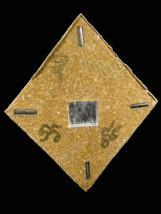 ด้านหลังองค์พระประดับด้วยแผ่นกระจก เป็นคันฉ่องโบราณใช้สะท้อนสิ่งไม่ดี ปราบสิ่งเลวร้าย ข่มคู่แข่ง แผ่นกระจกนี้ผ่านการเสกจากยอดเกจิอาจารย์มามากต่อมาก กันดวงตก แก้ดวงไม่ดี แก้ดวงชงก็ได้