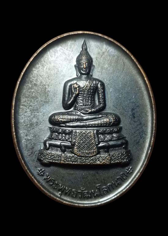เหรียญหลวงพ่อคูณ ปริสุทโธ ด้านหน้า พระพุทธวัฒนโลกนาถ ด้านหลัง มีคำอวยพรพร้อมลายเซนต์ 9 ต.ค.2546