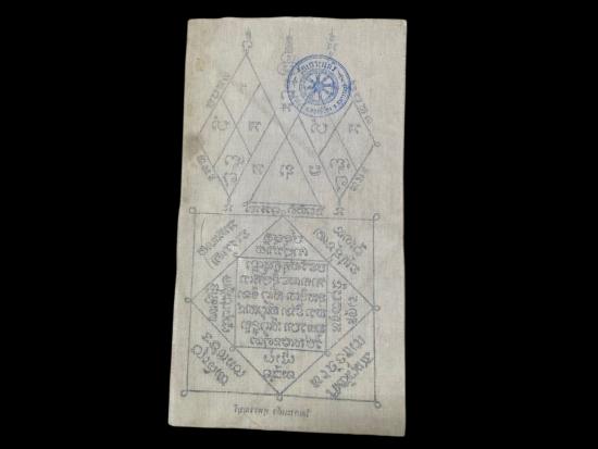 Q108. ผ้ายันต์วัดเกาะแก้ว สุพรรณ มีตราวัด เหมาบ้านติดมา (เคาะเดียวแดง) |
