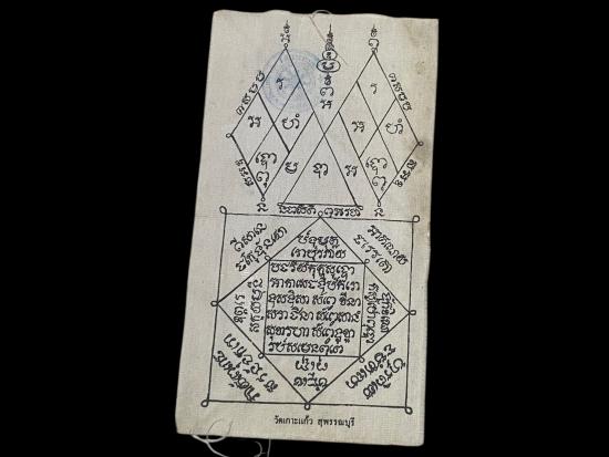 ผ้ายันต์วัดเกาะแก้ว สุพรรณ มีตราวัด เหมาบ้านติดมา