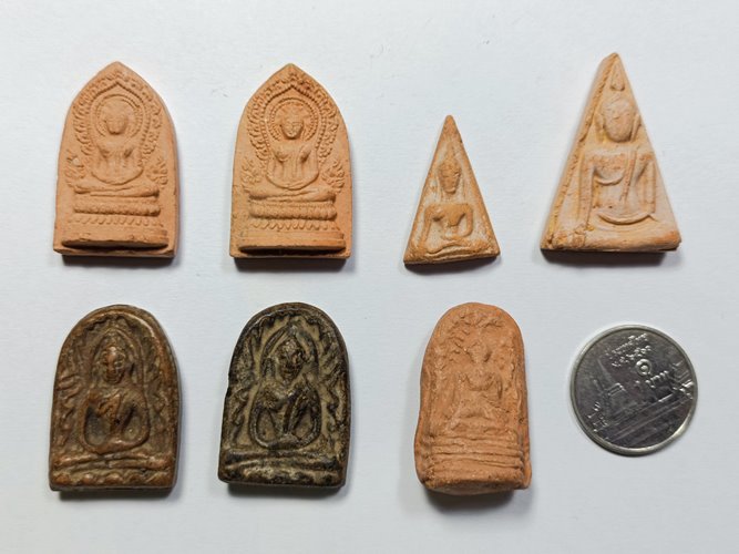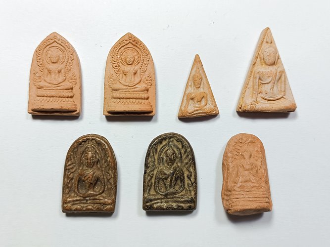 " วัดใจ เคาะเดียวแดง " พระดินเผา หลวงพ่อพุฒ วัดโรงวัว จ.ชัยนาท รวม 7 องค์ พระหลักสิบพุทธคุณหลักล้านครับคนพื้นที่ทราบดี องค์พระหน้าตาอาจติดบ้างไม่ติดบ้าง มีบิ่นกระเทาะนะครับโดยเฉพาะองค์นางพญาทั้งใหญ่-เล็ก(พระไม่มีกล่องนะครับ) พระเหมามาแบ่งปันกันไว้ใช้ครับ
