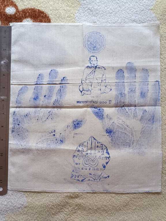 ผ้ายันต์ปั๊มสดรอยมือ หลวงพ่อพัฒน์ วัดห้วยด้วน จัดสร้างวาระอายุครบ 100 ปี |