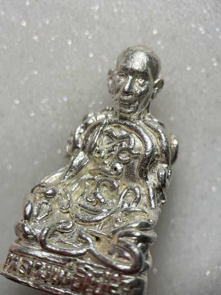 100.- ems รูปหล่อยันต์ยุ่ง ชุบเงิน อุดผง ฝังตะกรุด ตอกโค๊ด หมายเลขสวย no.89 หลวงพ่อโปร่ง วัดพรุตะเคียน อ.ท่าแซะ จ.ชุมพร มาพร้อมซองเดิม |