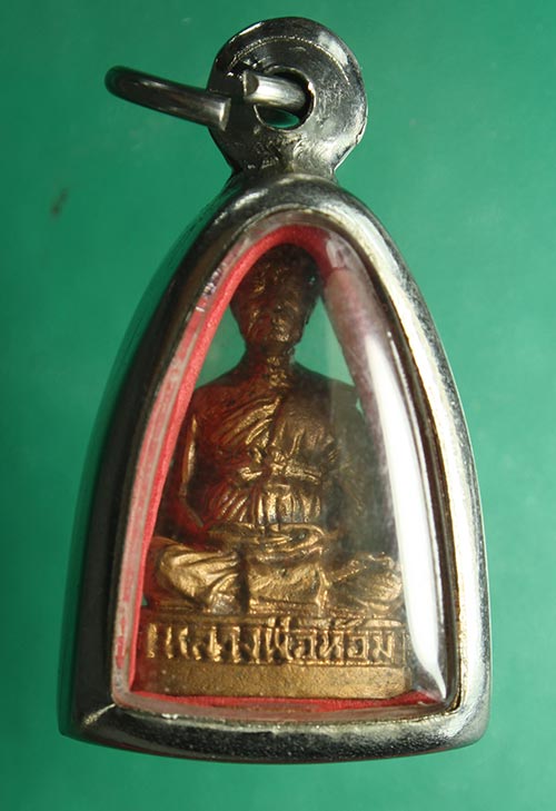 รูปหล่อหลวงพ่อห้อม อมโร วัดคูหาสุวรรณ สุโขทัย รุ่นพัฒนาการศึกษา ปีพ.ศ.2540 ก้นอุดเทียนชัย มีเกศาพร้อมตลับ |