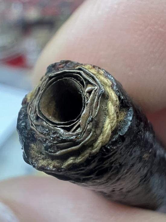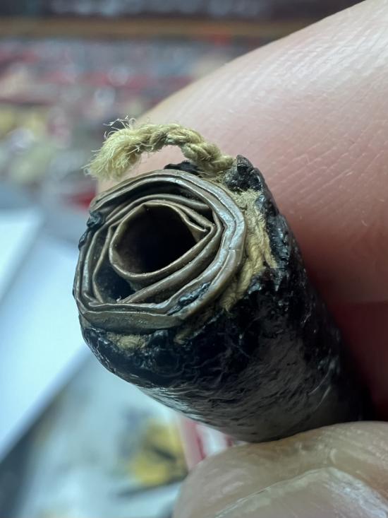ตะกรุดยาว 2 นิ้ว พอกคลั่ง ไม่ทราบที่ครับ เก่า |