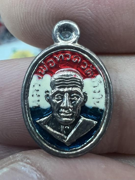 เหรียญเม็ดแตง เนื้อเงินลงยาธงชาติ พ่อท่านเขียว
