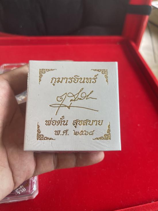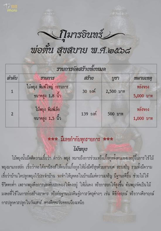 กุมารอินทร์ พ่ออุ้ยตั๋น สุขสบาย กุมารไม้พยุง แช่น้ำมันทรงฤทธิ์ เสก7วัน ลุ้นเลข พิมพ์ใหญ่พิเศษด้ายดง ขนาด สูง1.8นิ้ว มาแบบไม่แกะซีล ลุ้นเลขสวย |
