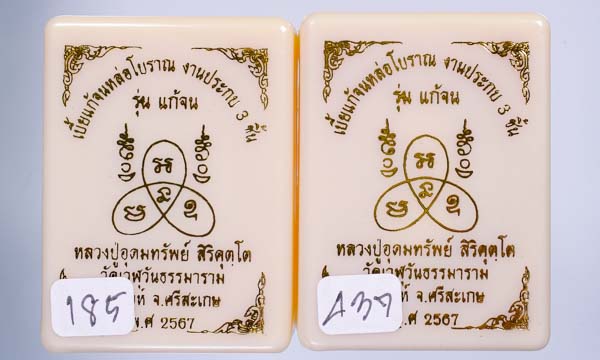 งานหล่อ ประกบ3 ชิ้น ข้างในมีผงงาช้างบด มวลสาร เขย่าดูมีมวลสาร สวยๆ หลวงปู่มหาศิลาร่วมเศก แบ่งเบาๆ ออฟชั่นเนื้อจะมีหลายๆ เนื้อหรือลงยาร่วมด้วย