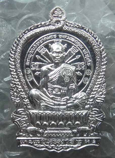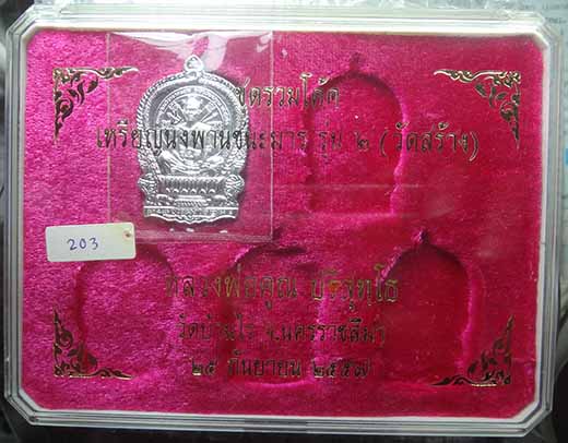 หลวงพ่อคูณ เหรียญนั่งพานชนะมาร 2 (วัดสร้าง) เนื้อเงิน กรรมการรวมโค๊ต No.203 ผิวกระจก จมูกโด่ง พร้อมกล่องกรรมการเดิม |