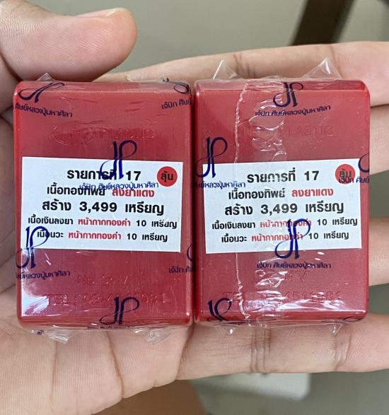 เหรียญพระพรหม ยอดเมตตา หลวงปู่ศิลา สิริจันโท เนื้อทองทิพย์ ลงยาแดง แจกชนะเลิศ งานประกวดพระเครื่องงานสมาคม จ.ขอนแก่น ซีลเดิมยังไม่แกะ จำนวน 2 เหรียญ (ชุด5) |