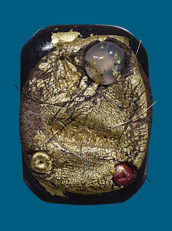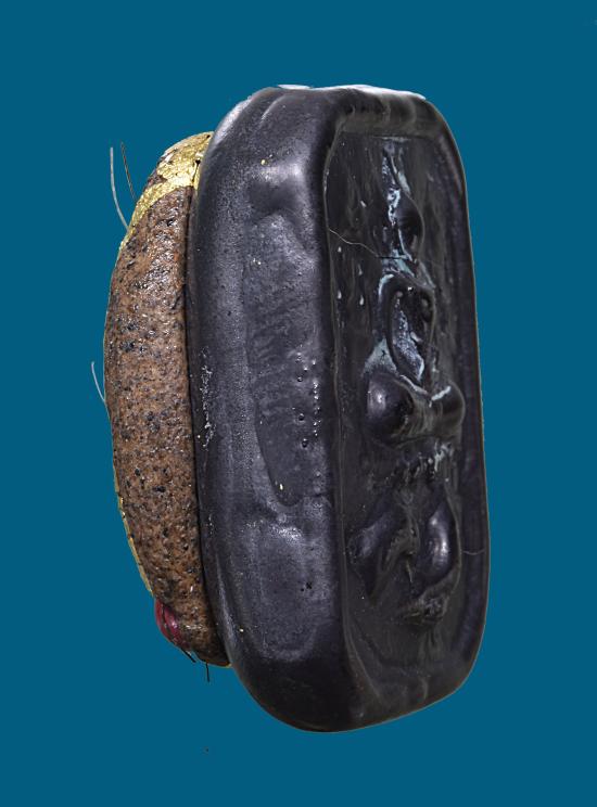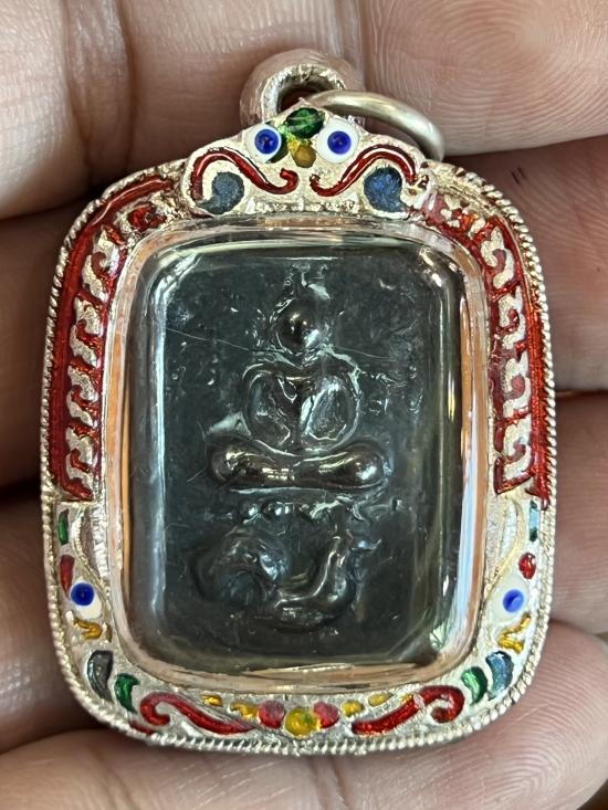พระหล่อพิมพ์พระพุทธขี่ไก่ เนื้อปรอท หลังแปะมวลสาร เกษา ปิดทอง ไม่ทราบที่