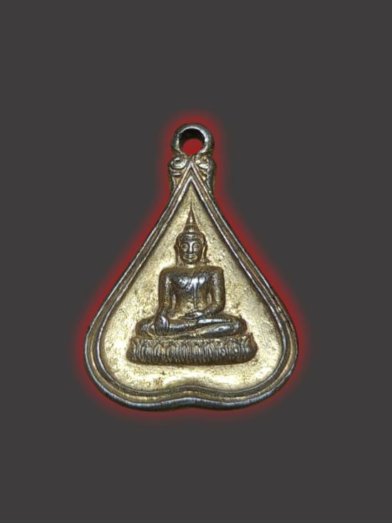 A1524.เหรียญพระเจ้าตนหลวง พิมพ์ใบโพธิ์จิ๋ว กะหลั่ยทอง ปี 2523 เคาะเดียวเเดง