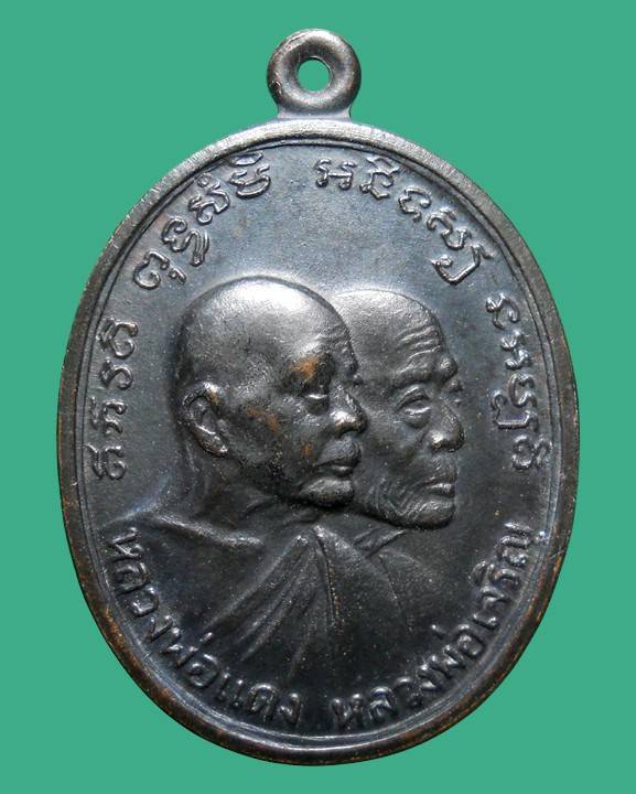 ด้านหน้าเหรียญวัวลาน องค์ด้านซ้ายมือคือหลวงพ่อแดง ส่วนองค์ขวาคือ หลวงพ่อเจริญ พระน้องชายของท่าน ซึ่งเป็นเจ้าอาวาสวัดทองนพคุณ ในจ.เพชรบุรี