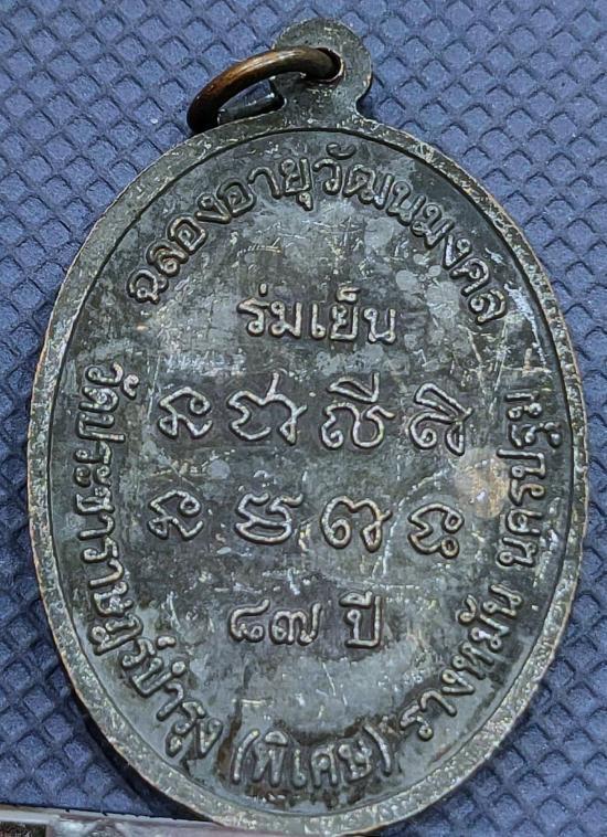 หลวงปู่แผ้ว ฉลองอายุวัฒนมงคล 87 ปี ร่มเย็น เนื้อทองแดงรมดำ ตอกโค๊ต วัดรางหมัน ปี 2552 |