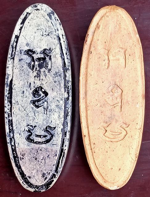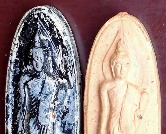 สีหม้อใหม่ พอมีหน้ามีตา อีกองค์สีดินดิบ แต่เปื้อนหมึกหรือสี ตามรูปครับ ดูให้ชอบค่อยเคาะ พระแท้ทั้งสององค์