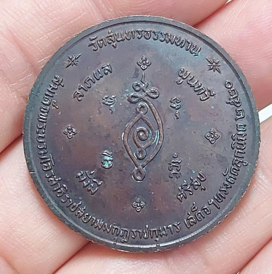 เหรียญบาตรน้ำมนต์เล็ก หลวง ปู่ธูป วัดแคนางเลิ้ง พ.ศ. 2520 ""ลาภ ผล พูลทวี มั่งมี ศรีสุข"" ขนาด 3.5 ซม. สภาพสวยเดิม |