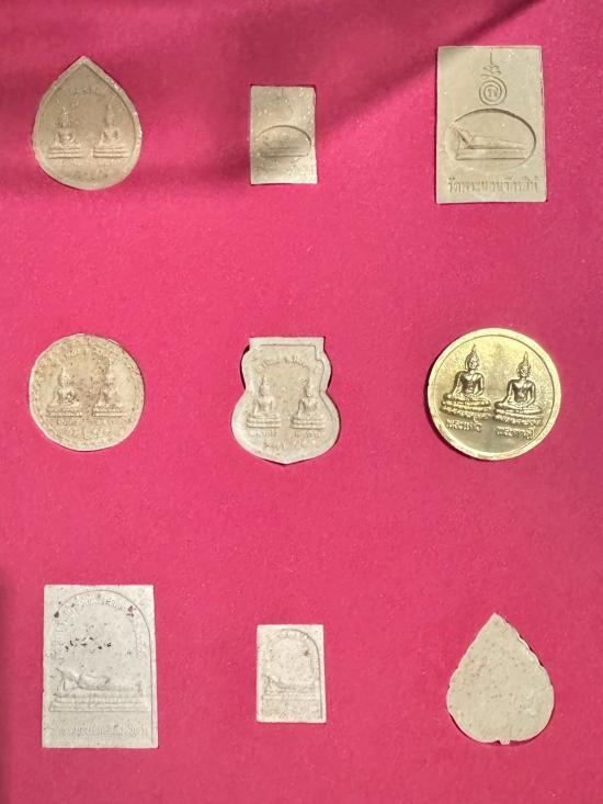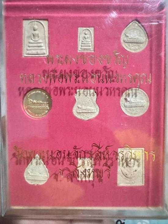 พระผงของขวัญ หลวงพ่อพระนอนนวหรคุณ วัดพระนอน สิงห์บุรี ชุด 9 องค์ มาพร้แม พระประจำวันอังคาร หลวงพ่อพระนอนจักรสีห์ ปางไสยาสน์ ไสยาสน์ ปางโปรดอสุรินทราหู หลังพระแก้ว พระกาฬ วัดพระนอนจักรสีห์วรวิหาร จังหวัดสิงห์บุรี เนื้อกะไหล่ทอง