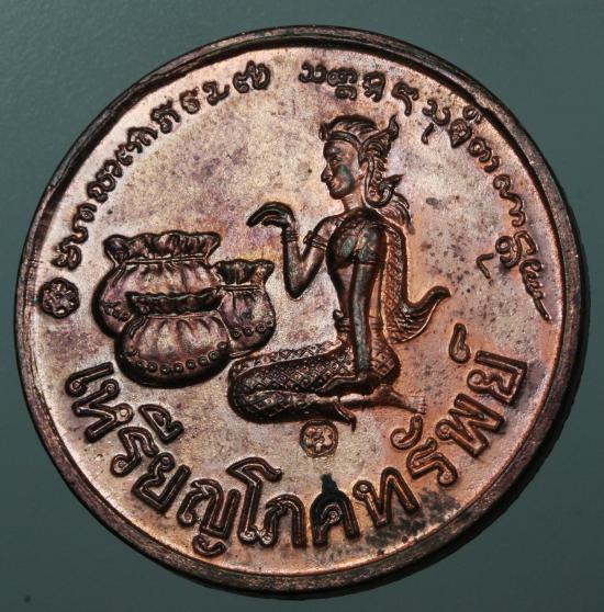 เคาะเดียวแดง เหรียญนางกวัก โภคทรัพย์ เนื้อทองแดง ปี 2536 ตอกโค๊ต รุ่นนะหน้าทอง หลวงพ่อเกษม เขมโก |