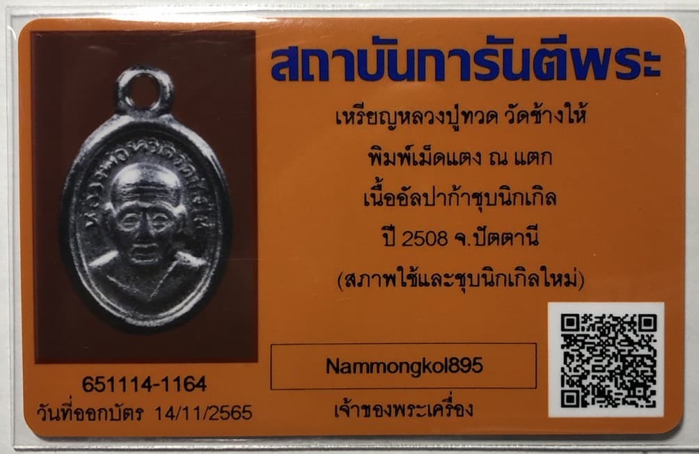 เดียวแดง เหรียญหลวงปู่ทวด วัดช้างให้ พิมพ์เม็ดแตง ณ แตก สภาพตามบัตรครับ พุทธคุณเหมือนเดิม