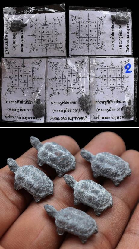 ชุด 5 องค์...เต่าจิ๋วตะหลิวหัก เนื้อแร่ตะกั่ว ปี 2558 พระครูน้อย วัดชัยมงคล จ.สุพรรณบุรี พร้อมซองใบยันต์เดิมจากวัด |