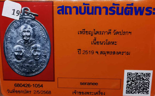 เหรียญไตรภาคี วัดปรกสุธรรมาราม เนื้อนวโลหะ ห่วงเดิม ปี2519 จ.สมุทรสงคราม + บัตรG-pra สภาพสวยเดิมค่ะ สภาพตามรูปทุกประการค่ะ