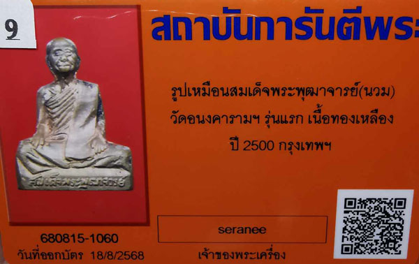 รูปเหมือนสมเด็จพระพุฒาจารย์โต(นวม) วัดอนงคารามฯ รุ่นแรก เนื้อทองเหลือง ปี2500 จ.กรุงเทพฯ + กล่องเดิม + บัตรG-pra สภาพสวยเดิมค่ะ