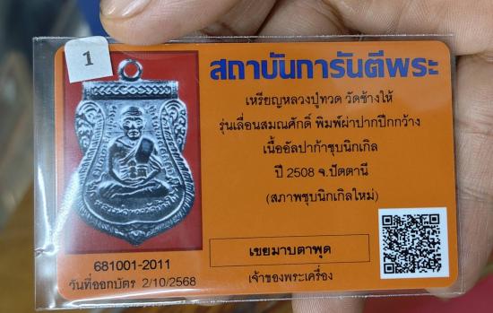 เหรียญเลื่อนสมณศักดิ์ ปี 2508 พิมพ์ผ่าปาก (เนื้ออัลปาก้าชุบนิเกิ้ลใหม่ )ตัวตัดปีกกว้าง เลี่ยมทองพร้อมใช้ครับ พร้อมบัตรรับรองเวปG ครับ